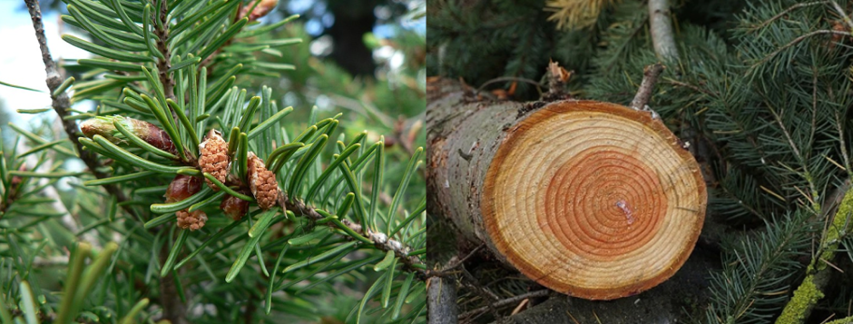 - Douglaska pobřežní Jedná se o velký strom, který může dosahovat výšky až 85 metrů. Dřevo má světlejší barvu a jeho vlákno je homogenní.