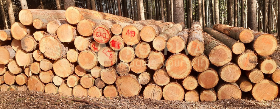 Sklizeň douglasky dřeva v těžebním továrna Prospiva