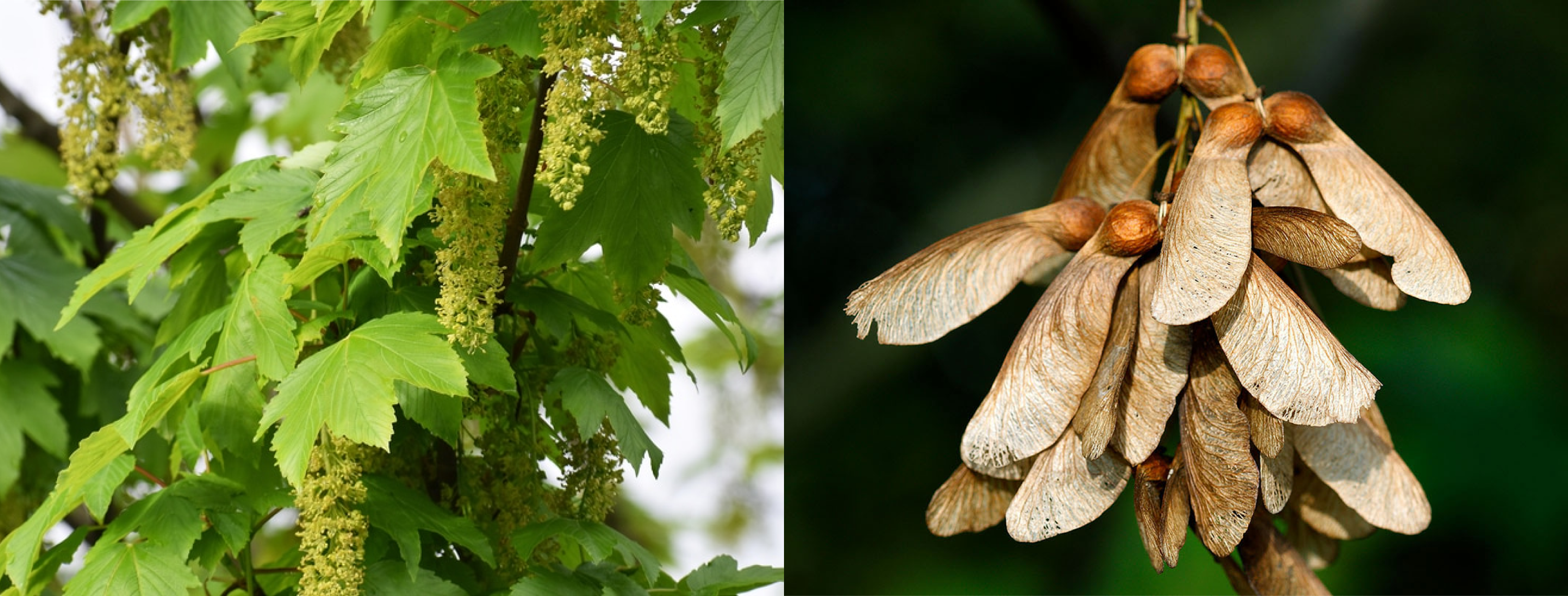 Leaves, flowers and fruits of Sycamore Maple tree