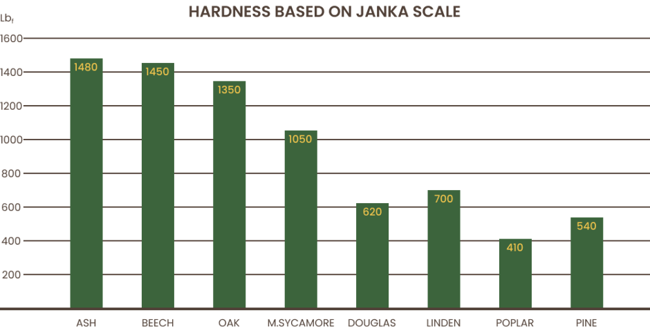 hardness under 700Lbf. The firmness of these wood lines is much worse than those woods mentioned above,