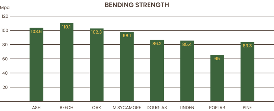 due to its low shrinkage. Besides, Beech has significantly superior bending strength, which is better than